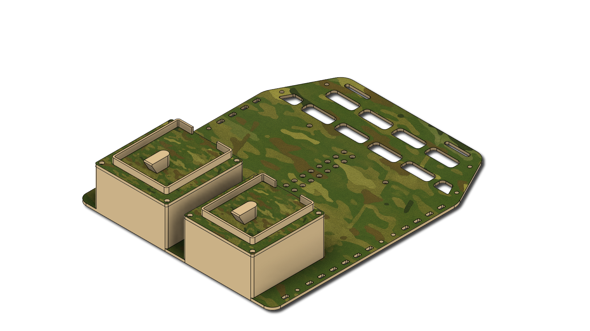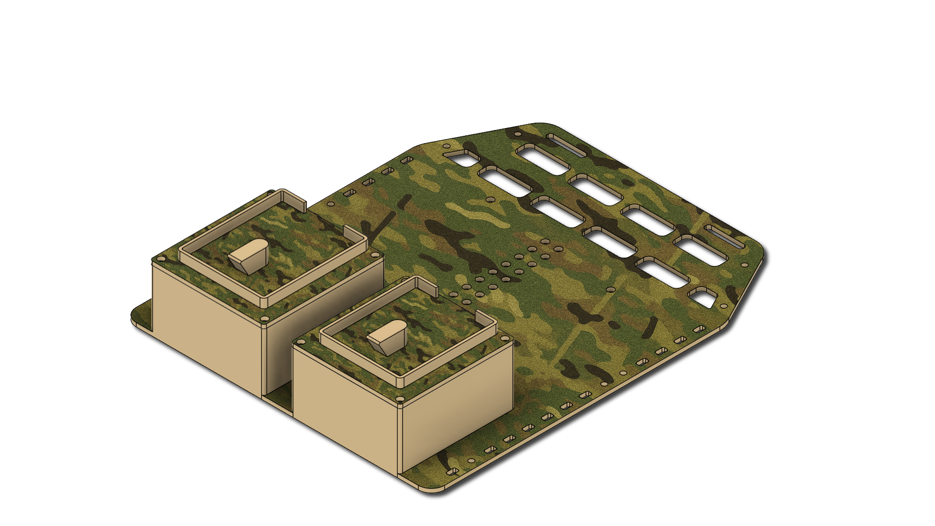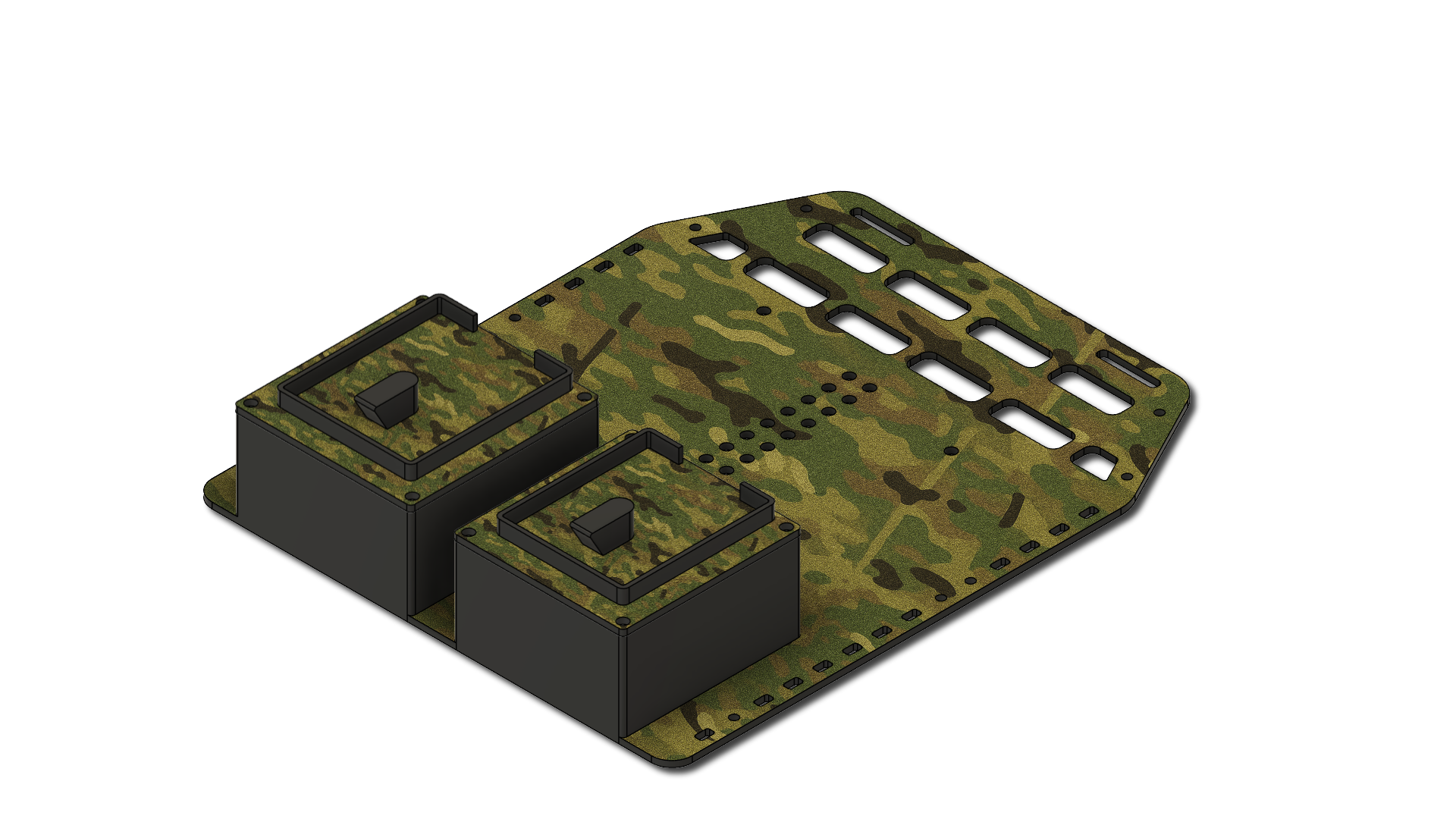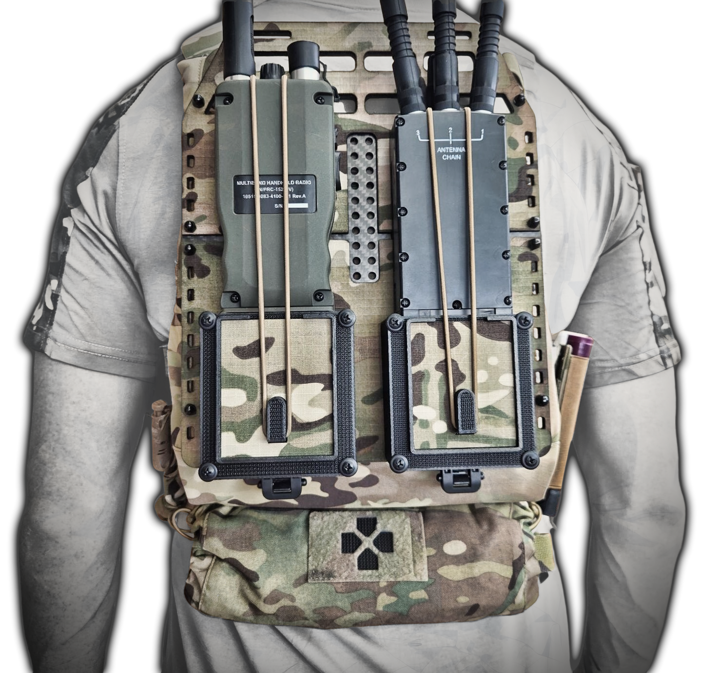 THIS BACK‑MOUNTED RADIO PANEL IS BUILT TO TURN ANY PLATE CARRIER INTO A FULL‑SCALE COMMUNICATIONS HUB. IT LOCKS DOWN A BLACK MANET RADIO—LIKE THE MPU OR SILVUS—ALONGSIDE A GREEN RADIO, INCLUDING THE AN/PRC‑152 OR AN/PRC‑163 HANDHELD RADIO.