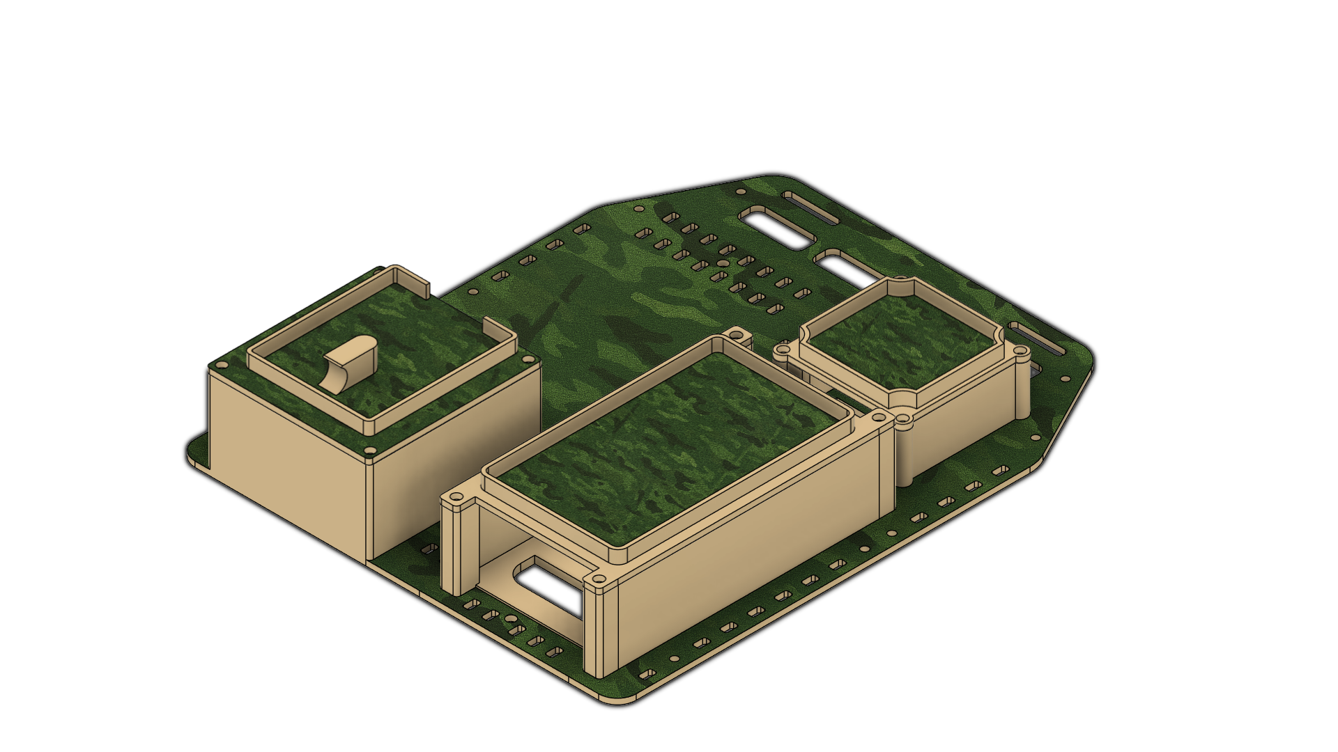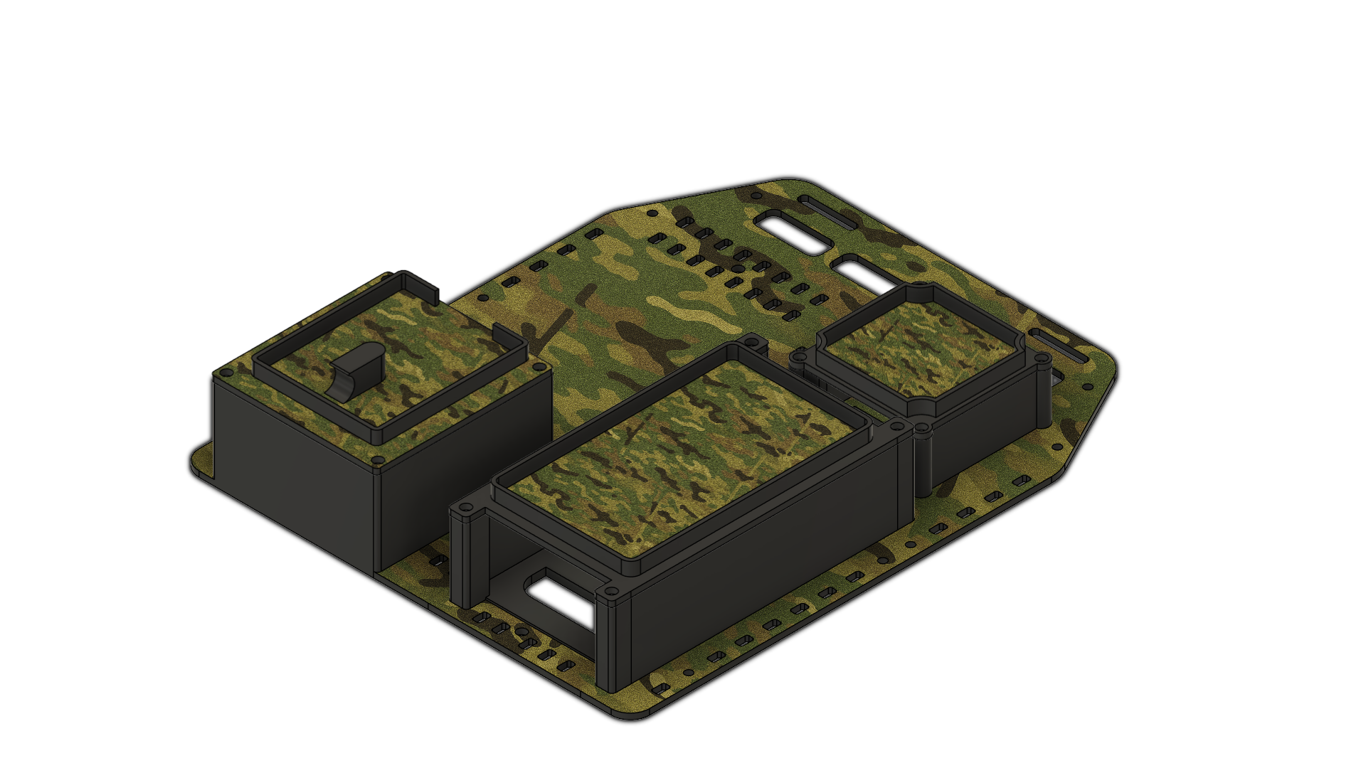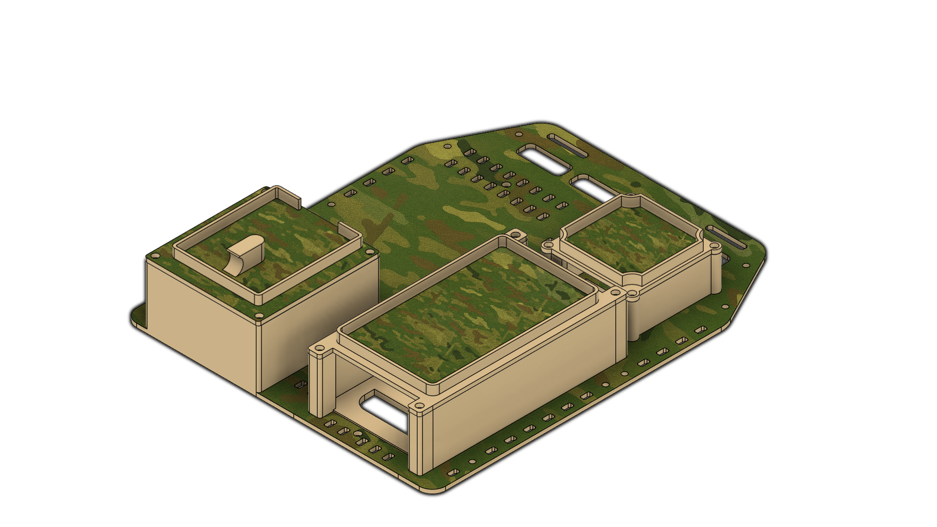 THIS PANEL IS ENGINEERED TO HOUSE A MILITARY‑GRADE RECEIVER AND MODERNISE ITS CARRIAGE METHODS. IT FEATURES AN INTEGRATED WIRELESS ACCESS POINT, A BATTERY CAPABLE OF POWERING THAT ACCESS POINT FOR UP TO FIVE DAYS, AND DEDICATED SPACE FOR USERS WHO WANT A CLEAN, ORGANISED SETUP OR NEED TO RUN A HARD‑WIRED CONNECTION INSTEAD OF WIRELESS. THE DESIGN ACCOMMODATES A WIDE RANGE OF SIDE CONNECTORS, AND COMBINING EVERYTHING INTO A SINGLE PANEL ALLOWS IT TO MOUNT SEAMLESSLY ONTO A PLATE CARRIER OR FIT NEATLY INSIDE A PACK FOR A MORE STREAMLINED LOADOUT.